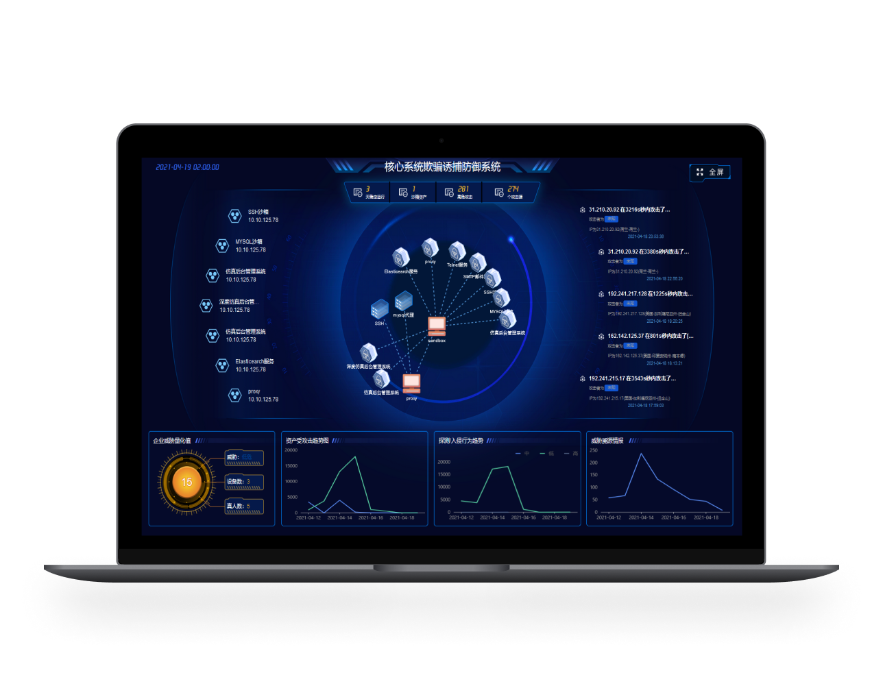 攻擊欺騙誘捕防御系統(tǒng)基于網(wǎng)絡(luò)欺騙和主動(dòng)防御理論,通過(guò)蜜罐、蜜餌等構(gòu)建沉浸式誘捕蜜網(wǎng),混淆攻擊視聽(tīng),增加攻擊代價(jià),達(dá)到延緩攻擊進(jìn)程,進(jìn)而保護(hù)用戶(hù)資產(chǎn)的目的